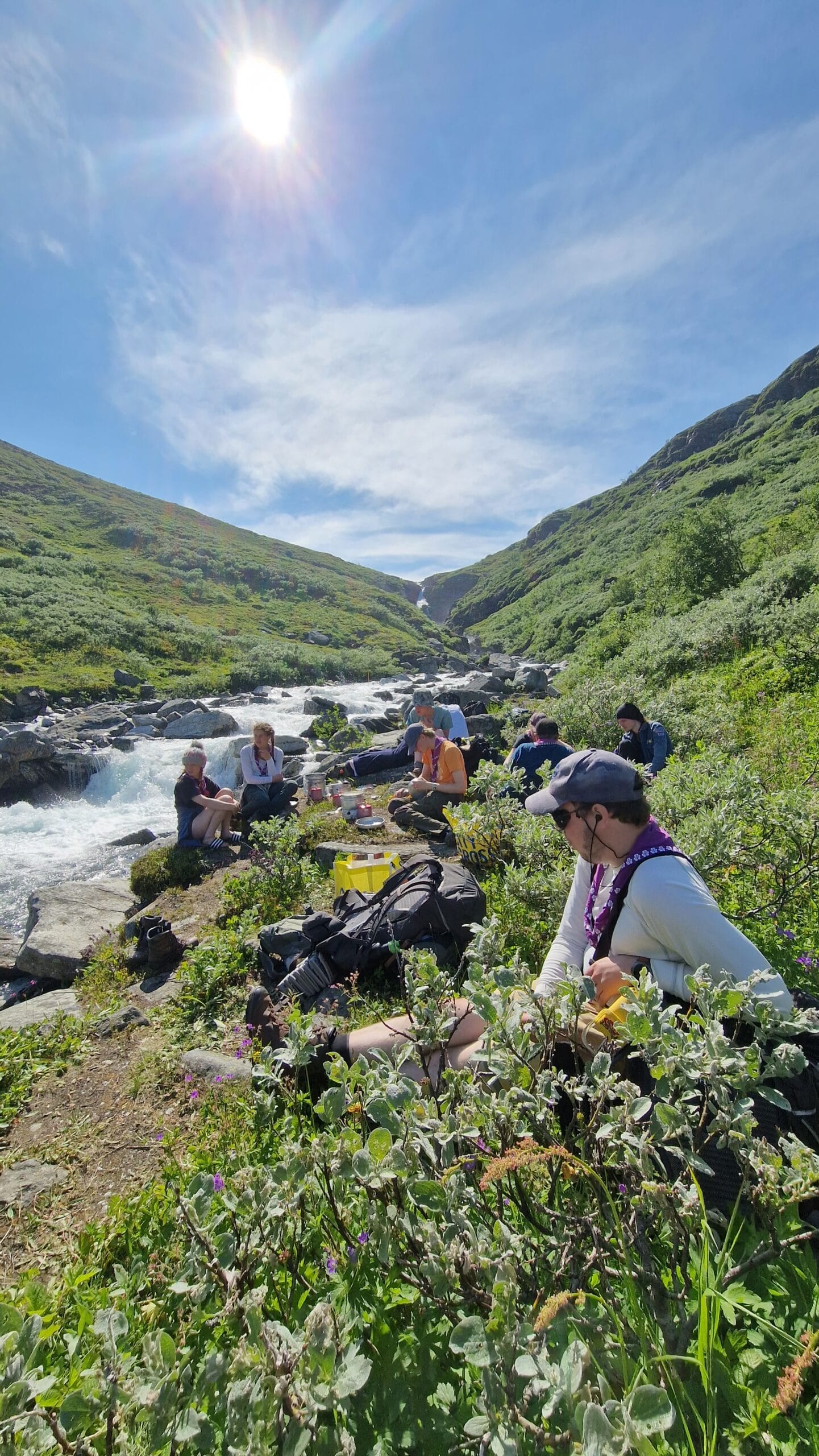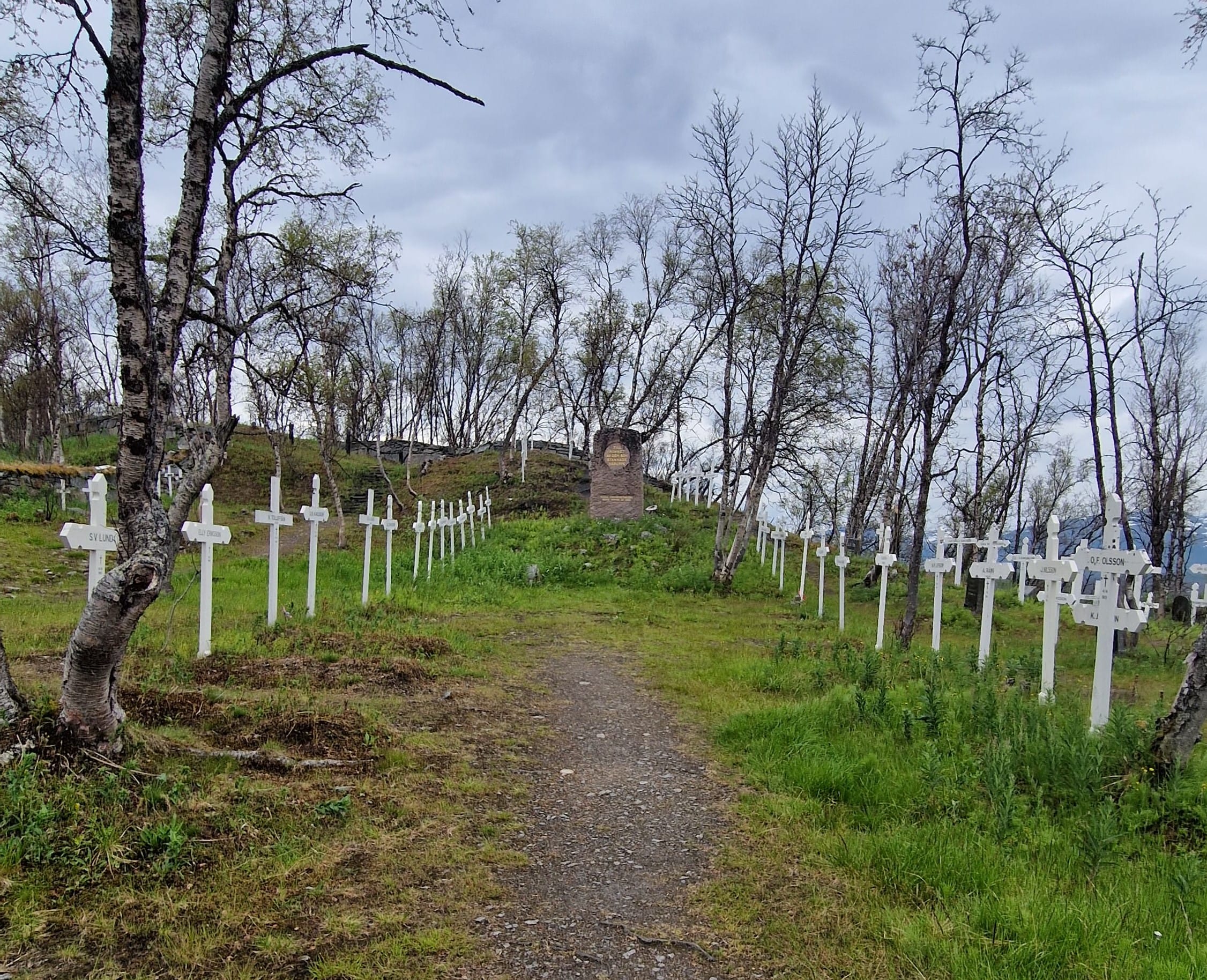 Den första dagsvandringen, på torsdagen, gick till Kratersjön och Rallarkyrkogården. Vid Kratersjön lagades det lunch och badades. Genom Björkliden går Malmbanan, Järnvägen som fraktar malm från gruvan i Kiruna till hamnen i Narvik. Den invigdes år 1903, för exakt 120 år sedan och byggdes av väldigt många personer, så kallade järnvägsrallare. Tyvärr dog en del av rallarna under arbetets gång och dessa begravdes på rallarkyrkogården. Den finns fortfarande kvar och står som ett monument i ett hav av vita kors, mitt i skogen kring Björkliden.