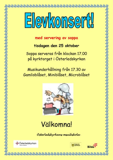 Med Micro-, Mini- och Gamlisblåset. Soppa från kl. 17. Konserten börjar kl. 17:30. Varmt välkommen!
